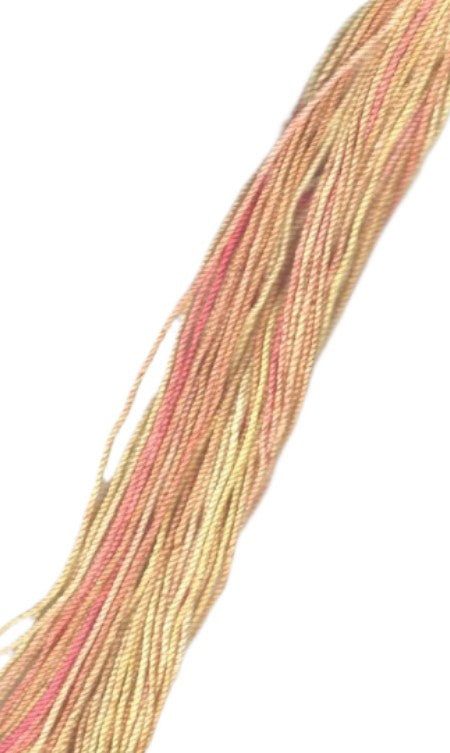 Yellow Blush is a stunning yellow base with strands of pink, blush, and coral scattered throughout the fiber.
