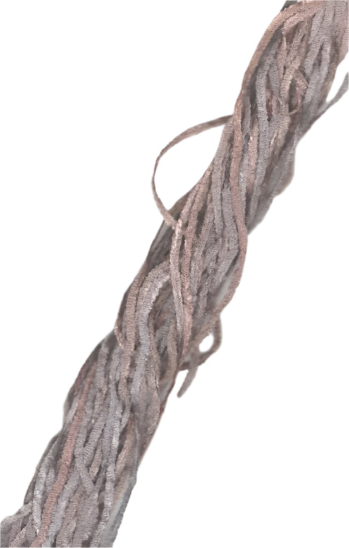 Our Silk Chenille fiber is comprised of 100% silk. Skeins are 10 yards each.