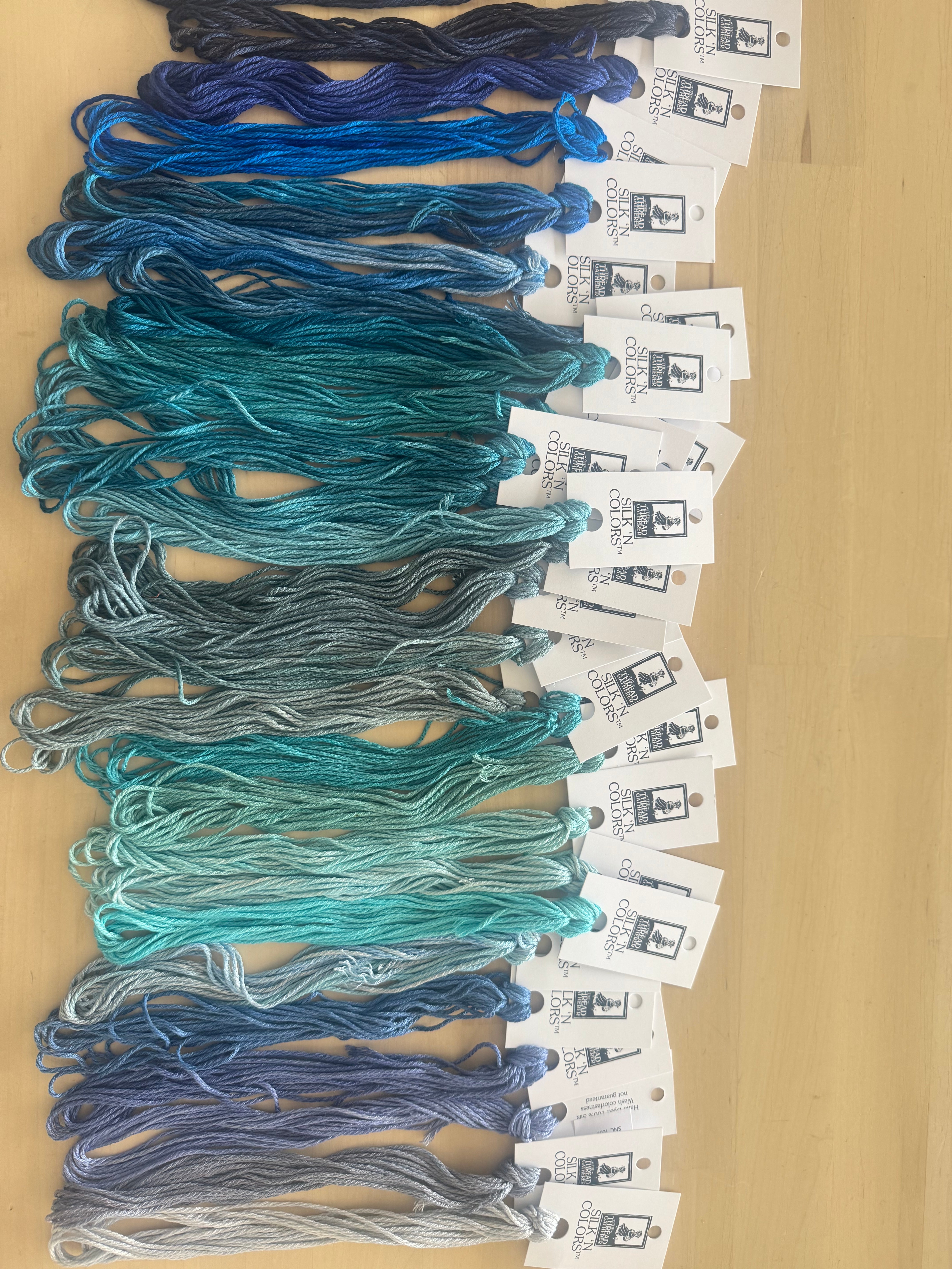 The hue is blue. Multiple variations of blue hues from our Silk N Colors line, a specialty set for the collector of color and fiber.