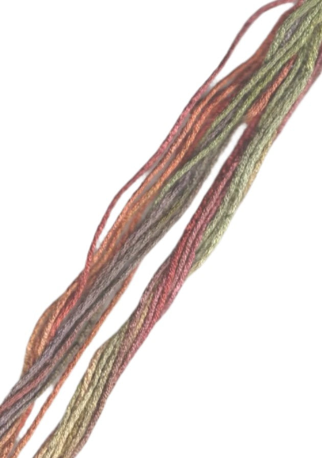 SNC 983 Autumn Bouquet is a multi color floss filled with medium blues, golds, browns, purple, and oranges.