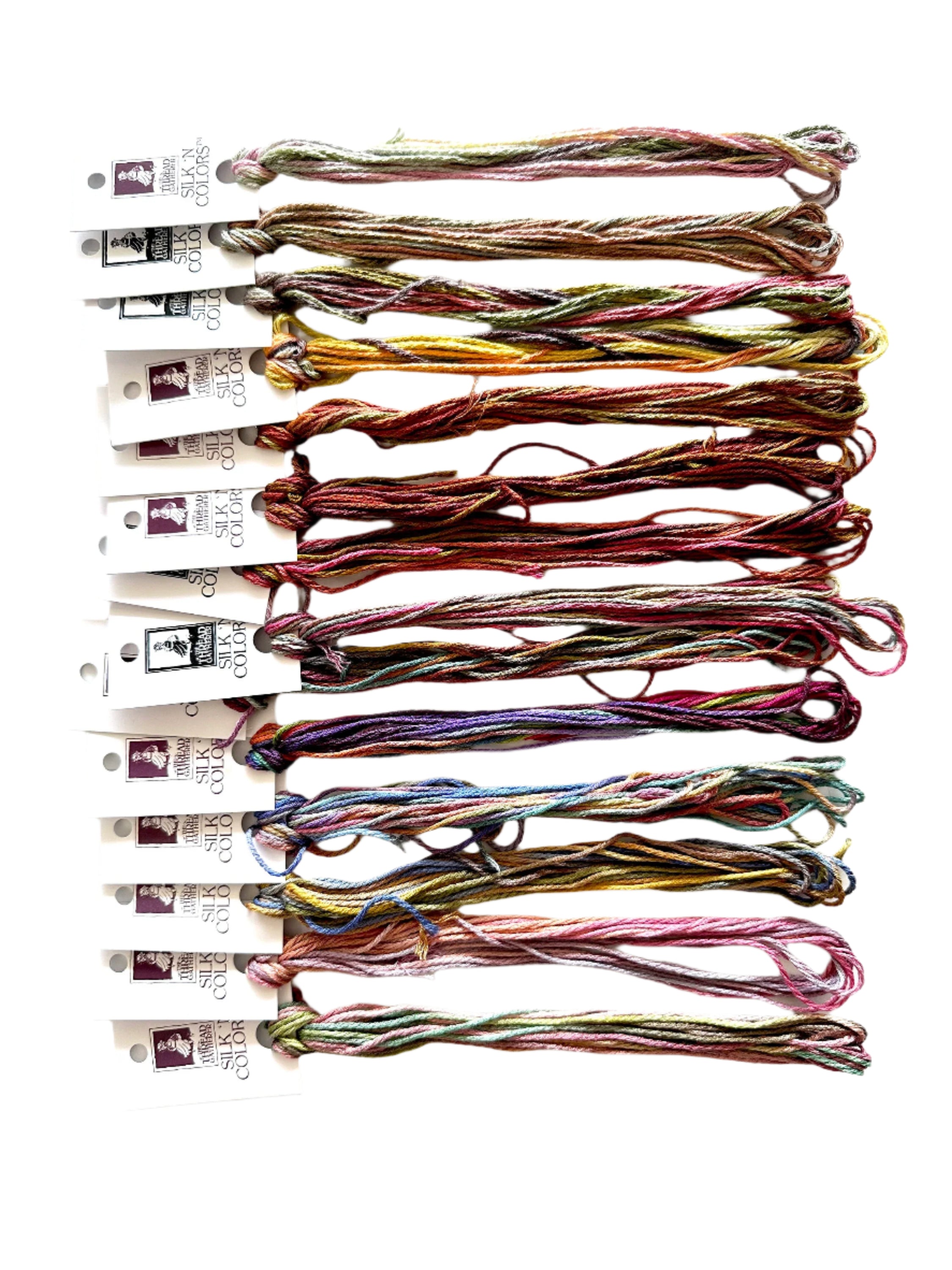 This is an outrageously beautiful selection of colors from our Silk N Colors line (SNC). These threads were selected to represent a range of depth as well as shade. The range moves continuously from one side of the rainbow to the other.